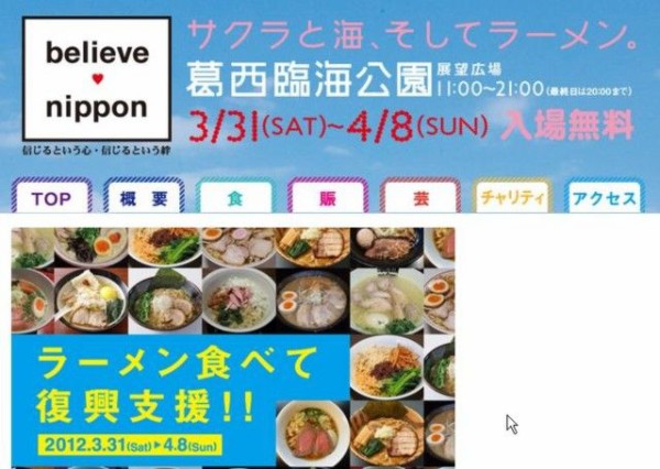 サクラと海 そしてラーメン 東日本大震災復興支援イベント Believe Nippon 葛西臨海公園展望広場 葛西臨海公園 麺好い めんこい ブログ Powered By ライブドアブログ